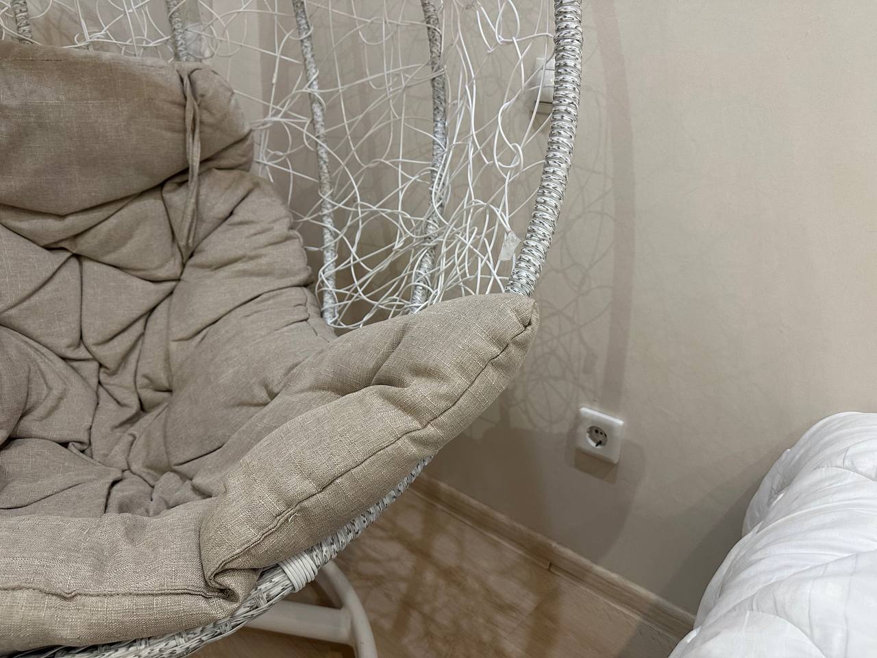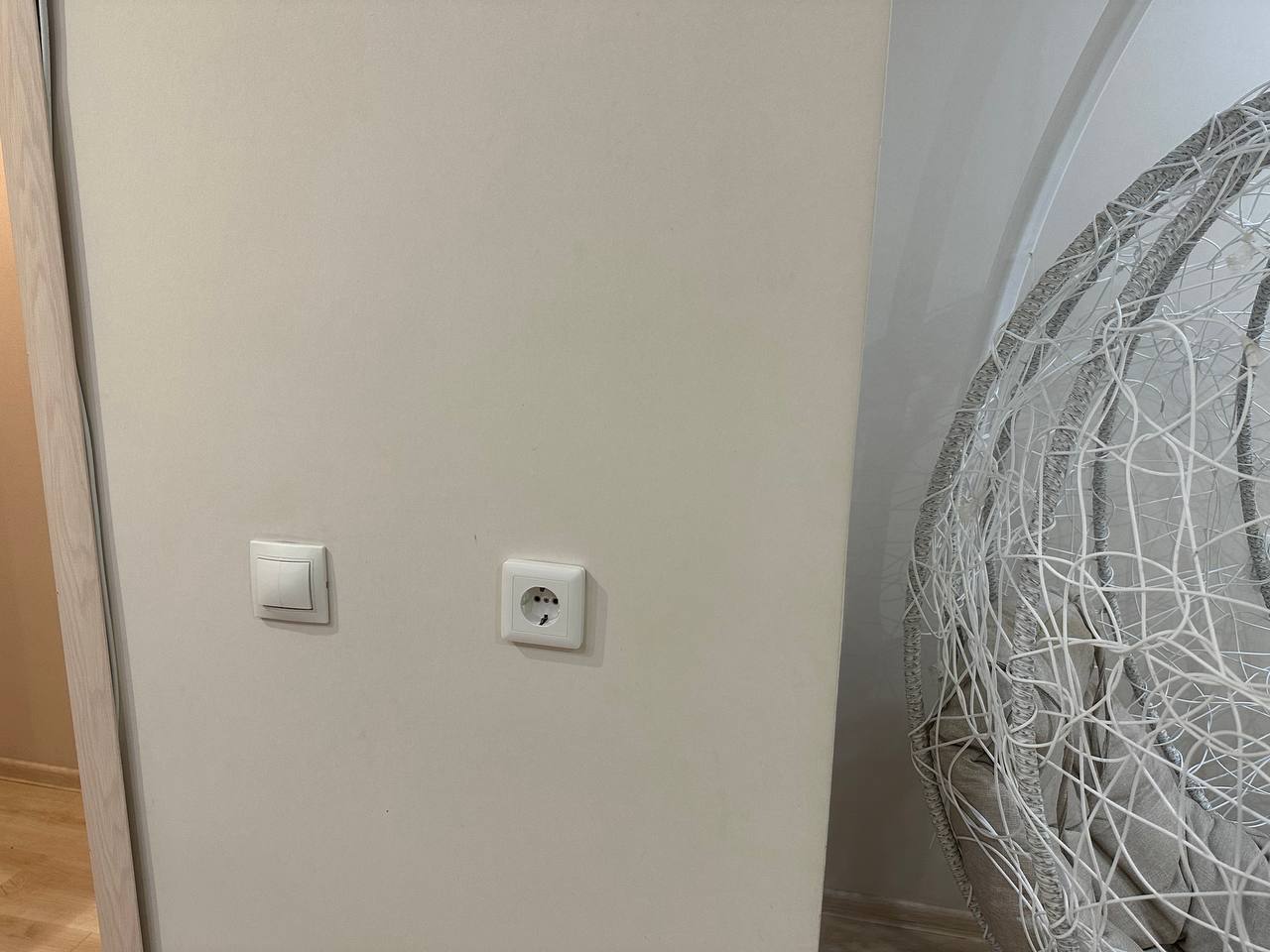 Один выключатель и розетка размещены за креслом-коконом. Сразу их можно не заметить.
